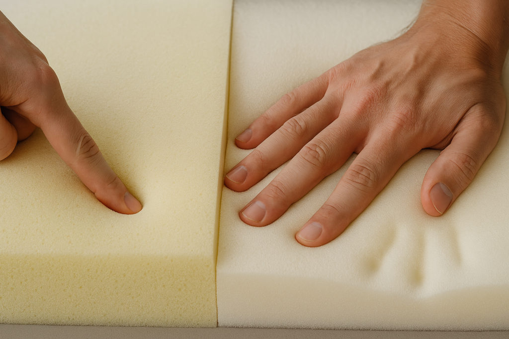 「高反発=硬い」「低反発=柔らかい」と思われがちですが、本質的な違いは力を加えたときの“戻り方”の性質にあります。